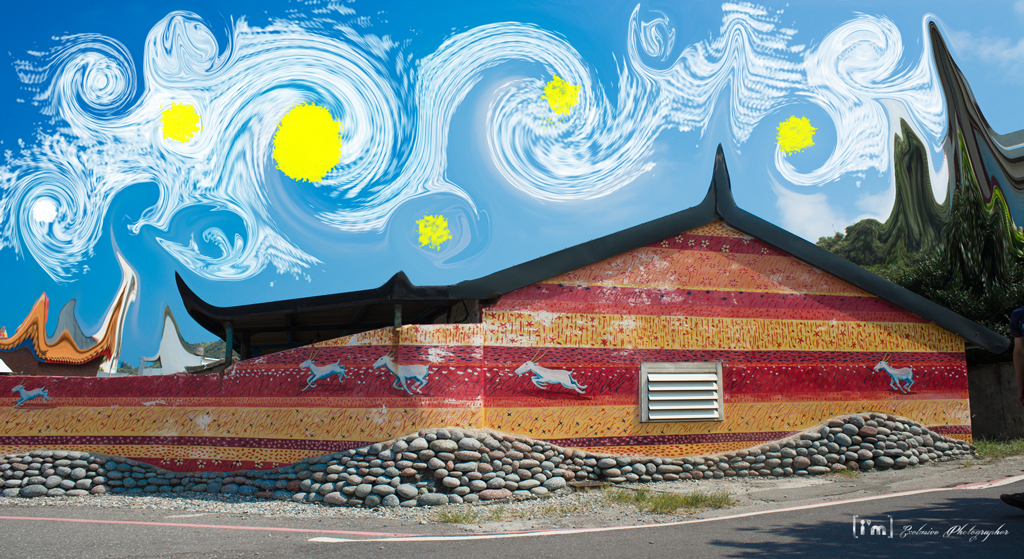 找張藍天白雲加建築物的照片,這張照片是在 台東【比西里岸】/ 白守蓮部落遺址 拍攝,建築物上的鮮豔塗鴉可以對等等的修圖加分。