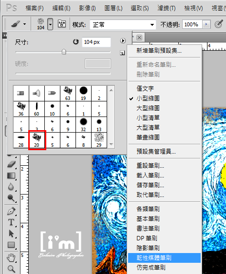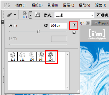 使用筆刷工具將筆刷改變成厚重筆刷,後選用104號厚重筆刷。