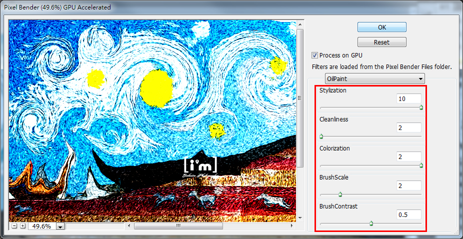 用濾鏡裡的油畫效果,大約如上數傎再自行修正,如果非cs6版本的photoshop就比需先安裝油畫濾鏡才能使用,我這裡示範用的是adone官方的油畫濾鏡