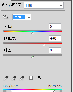 青色就是我們要的主要色系,所以色相不變,飽和度+40。
