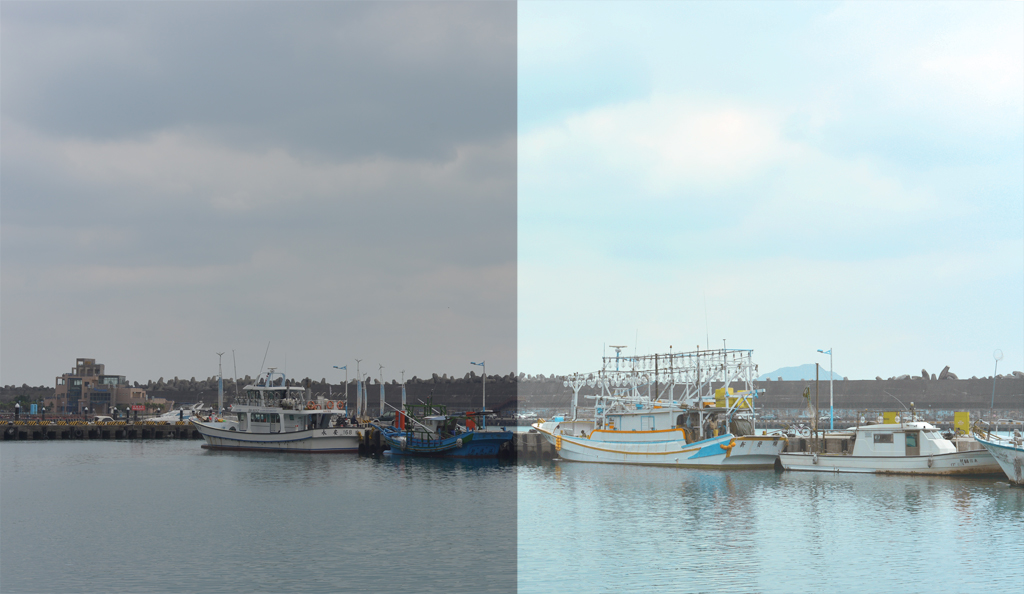 我刻意選了一張天空範圍大的港口照片,用PHOTOSHOP開啟。(圖為碧砂漁港)
