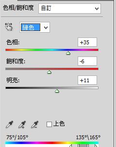 綠色色相+35讓他變青色,飽和度-6,明亮+11。