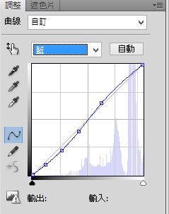 進入藍色曲線調高高光區的藍色,調暗暗部區的藍讓他偏橘。