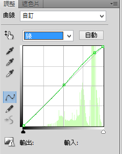 進入綠色曲線,也增加高光區的綠色,中間加節點為了不動到中間調及暗部。