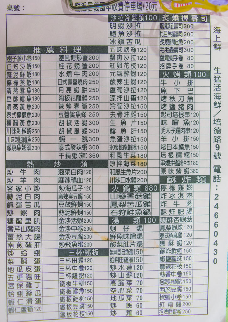 本來一聽要來吃基隆海上鮮???還搞不清楚是什麼東西,地點也不是很方便,上網一查才知道是基隆很知名的快炒店,位於培德路9號的斜坡上,不是很好找,就在新的測速照相機旁,之前超線有被拍過但運氣大好的沒有收到單>_<。