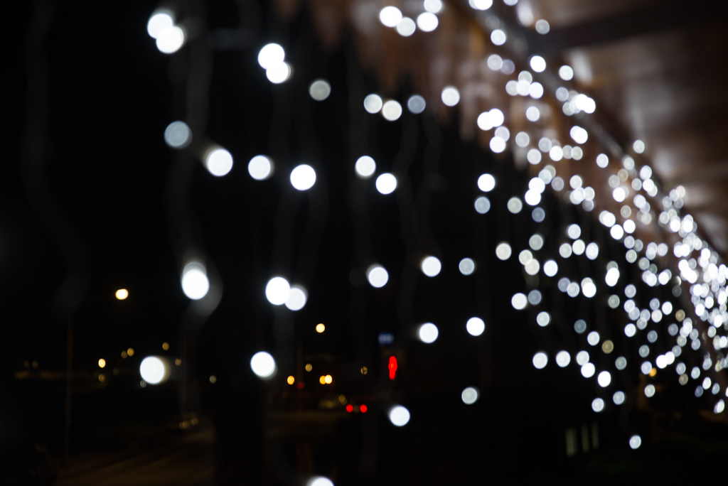 最後用完餐要離開時天色已暗,店外會開啟一點一點的亮光,點綴迷濛的夜空海景,像一層星空窗簾。