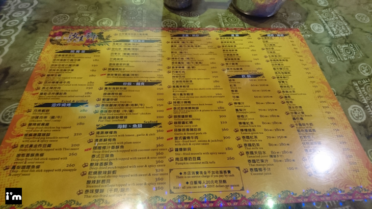 店內的menu直接就壓在桌上,可依各分類來點餐,值得一提的是不加收服務費太棒了。