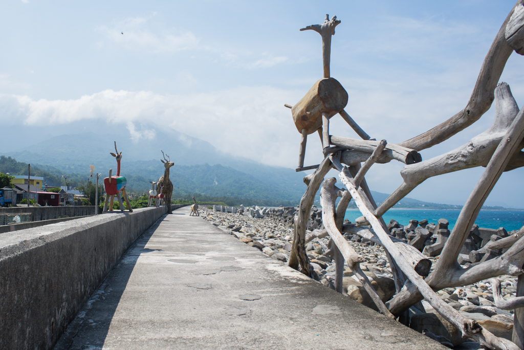 河提上就開看到許出木作羊的裝製藝術,原來台11線上附近一直看到的放羊日記招牌就是在這。
